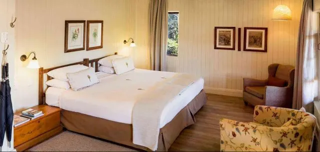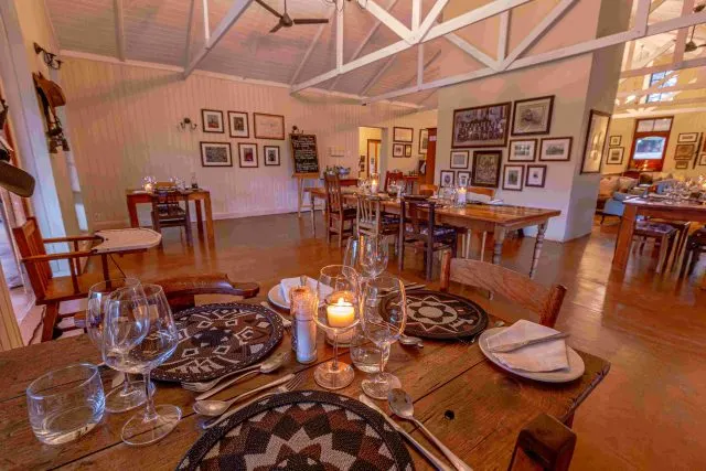 Before dinner was served, we headed down to Simon Blackburn’s, the owner, wine cellar which was located under the stunning history-filled library that was dedicated to the memory of his mom, Molly Blackburn (South African anti-apartheid activist and civil rights campaigner) where we got to learn a lot about her. The library holds more than 3000 books and the underground wine cellar can be booked for wine tasting and dining, for a bespoke experience. We chose which wine we’d like to pair with our dinner from their wide array of carefully selected South African wines. The lounge and dining area was reminiscent of a homely old farm-style inn with a choice to dine inside or on the patio. The entire room is decorated with genuine war artefacts, maps, posters, and old handwritten letters, creating a sort of time warp as you read the cursive script intimately describing the events and the escarpment. Before dinner, you are given a breakfast option list to choose what you would like to eat the next morning and the time you’d like to have it.