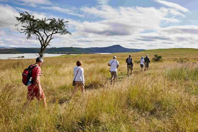 As we arrived, we were greeted by big smiles from the staff and duty manager, Melanie, who whisked us off for a short introductory tour of the lodge while our luggage was taken to our room. After giving us fresh towels to clean our hands and deliciously fresh brewed ice tea, she then showed us around the lodge, and guided us down to our suite which had a stunning view of the farm as well as the Spioenkop Nature Reserve. From there, we were led to the sundowner viewpoint while dinner was being prepared. There is something special about sitting in a wide-open field overlooking the Spioenkop dam glistening with the Drakensberg Mountain range as a backdrop and the setting sun creating the most splendid silhouette. We sat with two international couples who travelled from London to see the beauty our country offers.