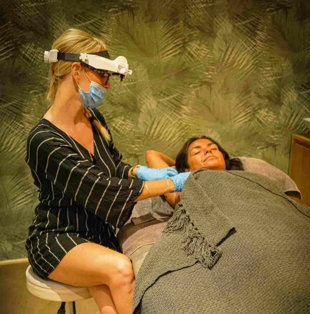 Since the chin area is very hormonal and often has the thickest hair, that is one of the most common problem areas Kate treats. Electrolysis is the only 100% FDA approved permanent hair removal treatment where you use a tiny probe and treat each hair individually with a tiny electric pulse to kill the “food factory” that feeds the hair. She also removes skin tags, milia, broken capillaries on the face, cherry angiomas, and more. Working with transgender clients, she helps them start their transition journey by working on their facial hair and other areas to get them ready for the gender reassignment surgery.
