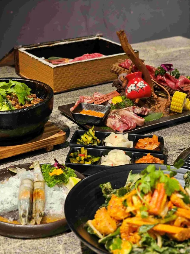 Part of the menu are pre-determined interactive set meals served in courses, and we were served Set Menu C. It comprises a beach garden salad, several cuts of Wagyu beef, lamb loin chops, sea tiger prawns, Wagyu braised rice, and a dessert, an adventure for your taste buds. It brings back the social element to enjoying a meal with other people, as you grill your food at your table together. The components were presented with dry ice in a book-style box, giving the whole experience an otherworldly effect. We gathered around to watch the demonstration on how to grill the meat. There are grills installed in all the tables, with no smoke and minimal odours thanks to the built-in suction system throughout the restaurant. Next, they showed us how to eat the meat once grilled. Taking a lettuce leaf, you add in the meat, topping it with kimchi, radish, and pickled cucumber to balance the flavours. It was eventually our turn to cook, starting from the thinnest piece of meat to the thickest, and tasting along the way.