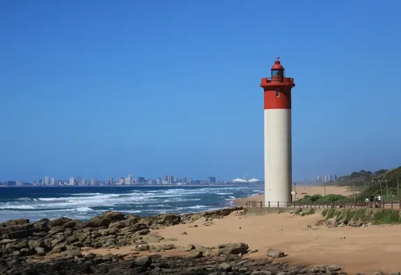 It was completed in 1954 to replace the failing Bluff Lighthouse and to guide ships along KwaZulu-Natal’s coast. Standing 21 meters tall, it is iconic for its striking red-and-white cylindrical design and stands prominently on the promenade near the Oyster Box Hotel. It was built in just four days and 19 hours, and guides ships with a 600,000-candela light, visible up to 24 nautical miles away. The lighthouse is still operational, and visitors can climb the 55 steps to the top for breathtaking glimpses of the Indian Ocean and the surrounding coastline.