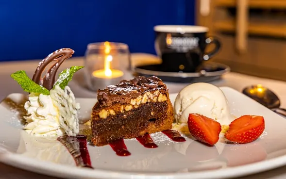 For dinner, we opted for salads as our starter. For mains, I chose the chicken option, and my partner had the Pork Belly option; both dishes came with fluffy mashed potatoes, green beans and julienned carrots. This was followed by a delicious brownie and homemade ice cream for dessert, which we shared, as we were both stuffed. If I weren’t, I definitely would have had some more!