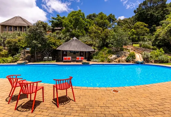 We arrived at The Cavern about 14:00, perfect timing for us to check in. The lovely staff welcomed us with big smiles and gave us an informative introduction – we immediately felt relaxed and ready for our weekend. They directed us to a parking bay near our rooms and even gave us a hand with our bags. Our room overlooked a stream running through a beautiful gorge surrounded by large trees, plants, and flowers. Before I could think of unpacking our goodies, my partner looked at me and said, “Let’s go exploring”. We thought we were just going to go for a short adventure, to see what was directly around us, but before we knew it, we were on the hiking trail that led us to the natural pools – there I was, in my faithful flip-flops and a dress at six months pregnant, but that didn’t stop me! The scenery was beautiful and peaceful; the birdlife and flowers that we saw on the way were stunning. We were in our happy place!