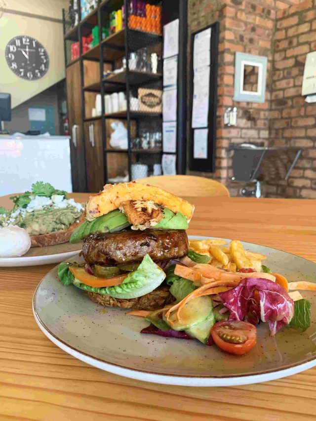 With amazing dishes and a sea view to match, Manta Cafe is the newest spot in Umdloti. Feeling like we were on holiday, we started with their “morning fun” – an African Ice (an iced coffee with an Amarula twist) and a boozy, sweet Sunrise. While sipping our drinks in the sun, it was time to dig into our brunch. We tried Manta’s Herby Trout with herbed crumpets, smoked trout and cream cheese. The crumpets were fluffy and paired well with the dollops of cream cheese and herbs. We also ordered the Manta Stack – an English muffin topped with cream cheese, sliced avo, salty bacon and two poached eggs. The show-stopper of the dish was the addition of spekboom chutney, which was sweet with a delicious curry flavour. You can even buy a jar of this unique chutney at the cafe! We will definitely have us coming back for more.