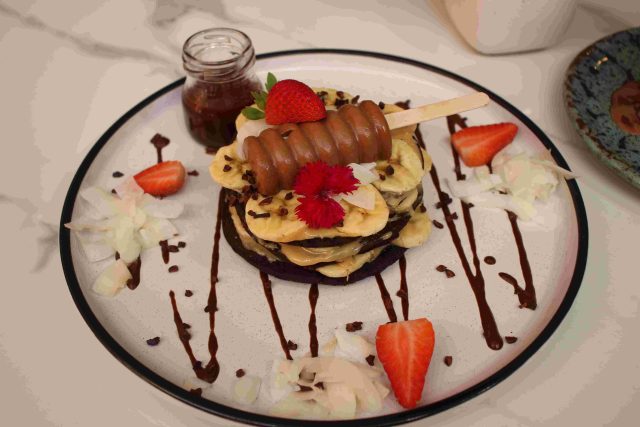 Situated behind Health on Boardway, this hidden gem is worth the visit to Durban North. Most of their meals are vegan and all are beautifully presented. As a lover of smoothies, I went for their Peanut Butter Mudslide Smoothie. This was a meal on its own – rich, creamy, thick, made with peanut butter, banana, chocolate pea protein and almond milk, and topped with a chocolate drizzle. Valeo’s pancake stacks are very popular, so I just had to try them. The Chocolate Protein Pancake Stack was an incredible choice! The pancakes were packed with chocolate and layered with generous spreads of peanut butter and slices of bananas, served with strawberries, chocolate sauce and, to add the decadence of the dish, chocolate peanut butter ice cream that melted into another sauce on top of the stack. Valeo definitely has the PB, chocolate and banana combo down to a tee!