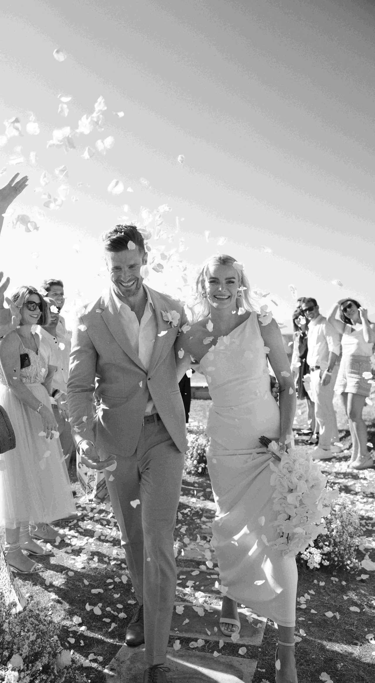I just had my sister as my maid of honour, and Mark had his brother and his best friend as his best men. Having my sister up there with me was incredibly special. We organised transfers to take guests from the hotel to the venue and back. The night ended at 1 a.m. and everyone on the last shuttle had their shoes off and sunnies on. Once we got back to the hotel, there was a mandatory night swim and I even jumped in with my dress!