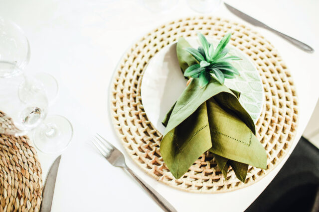 Another element to dressing up your table is cloth napkins. Cloth napkins add an elegant touch to your table, and you don’t even need fancy napkin rings to make them look pretty! YouTube some quirky ways to fold napkins, or tie some colourful ribbon around them. Another tip is to swop the napkins with tea towels, as you can find these in so many colours and with cute patterns or illustrations.